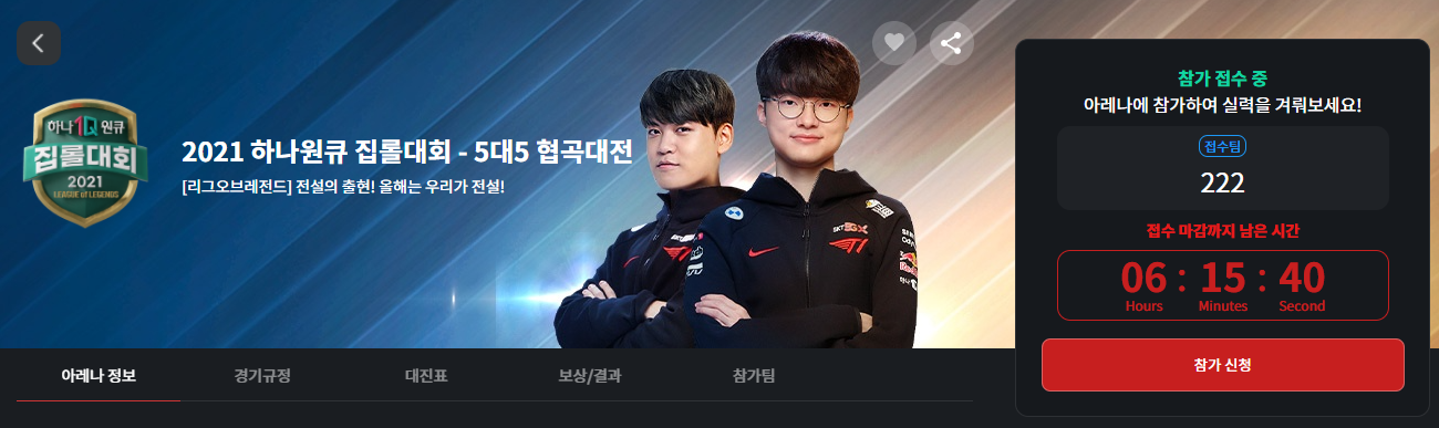 총 상금 3500만 원 T1 패밀리 4스팁벌 2021 하나원큐 집롤 대회 개최