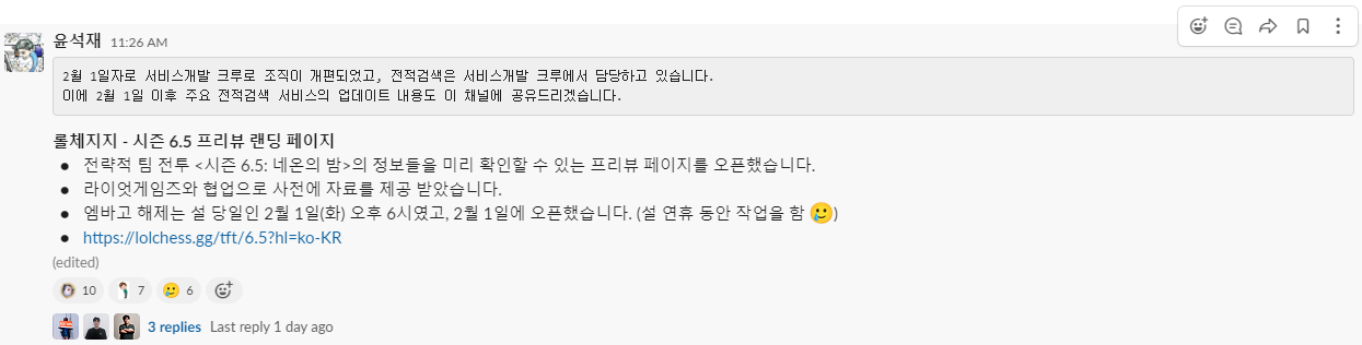 제가 롤체를 슬랙에서 봤기 때문이겠지요