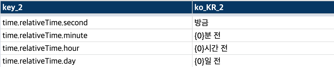 우선 구글 스프레드시트에 문자열과 문맥, 혹은 키와 문자열 값을 아래와 같이 정리했습니다.