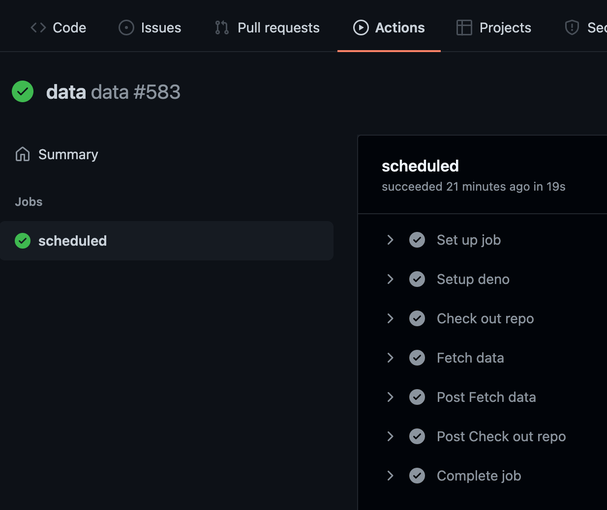 Github Flat Data깃헙 플랫 데이터란 Github Action(이하 깃헙 액션) 서비스의 일부로, 데이터사이언스를 위해 주기적으로 데이터 마이닝 작업을 하여 정규화된 자료(normalized data 혹은 flat data)를 자동으로 가져오는 기능입니다. 쉽게 말하면 POSIX의 스케줄러인 cron 형태로 돌릴 수 있는 깃헙 액션입니다.
