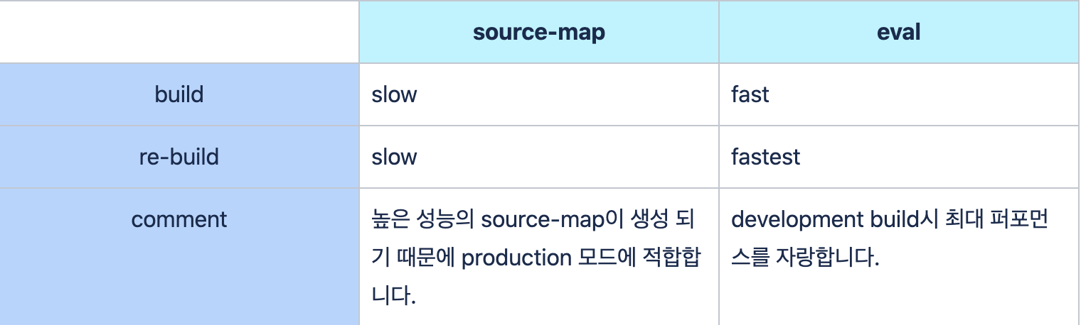 💡 source-map은 잘 압축해준다는 장점은 있지만 느리다는 단점이 있습니다.