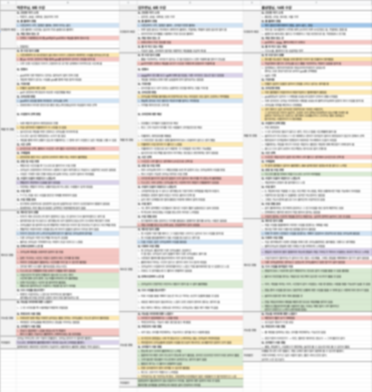 이렇게 구어체로 작성된 녹취록은 요약본으로 한번 더 정리하는 작업을 합니다. 이번에는 한 시트에 전체 인터뷰 내용을 넣고 주제를 카테고라이징 해서 내용의 요점만 짧게 정리합니다. 일종의 데이터 전처리인 셈입니다. 추후 분석을 쉽게 하기 위해 한 가지 이야기는 한 셀에 등록해 주세요.