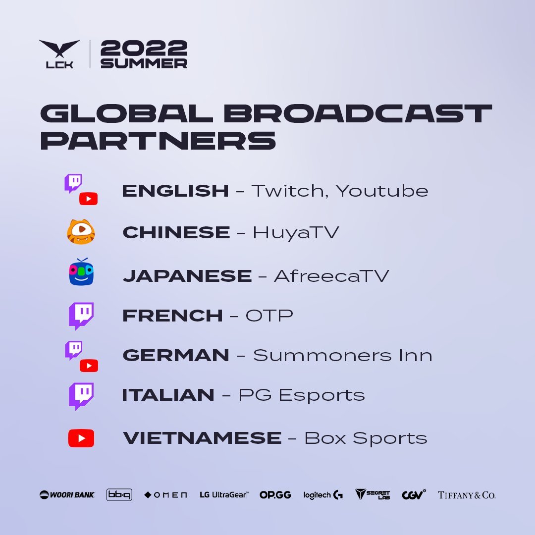 ② LCK의 서머 방송 파트너 공개 : 아래 내용이 있고 자세한 내용은 LCK 트위터를 참고하시면 됩니다.