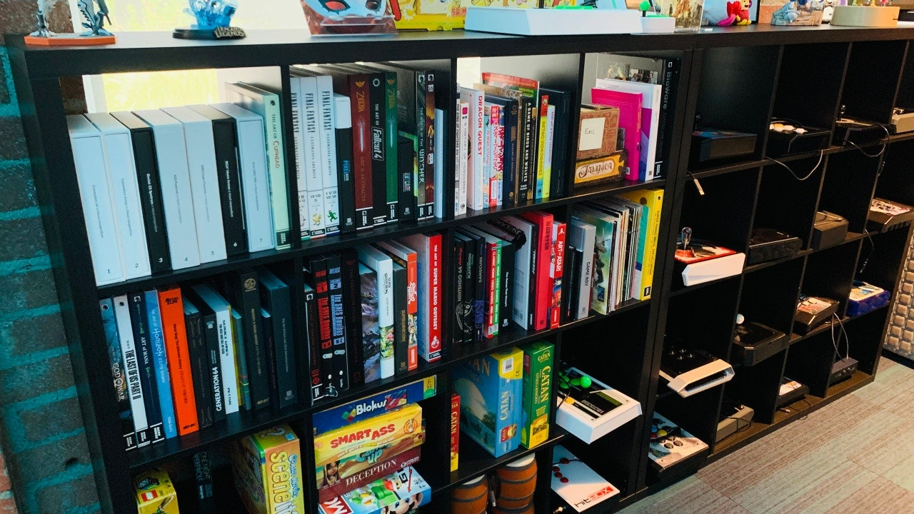 여러 트로피나 게임 피규어 등이 전시되어 있습니다