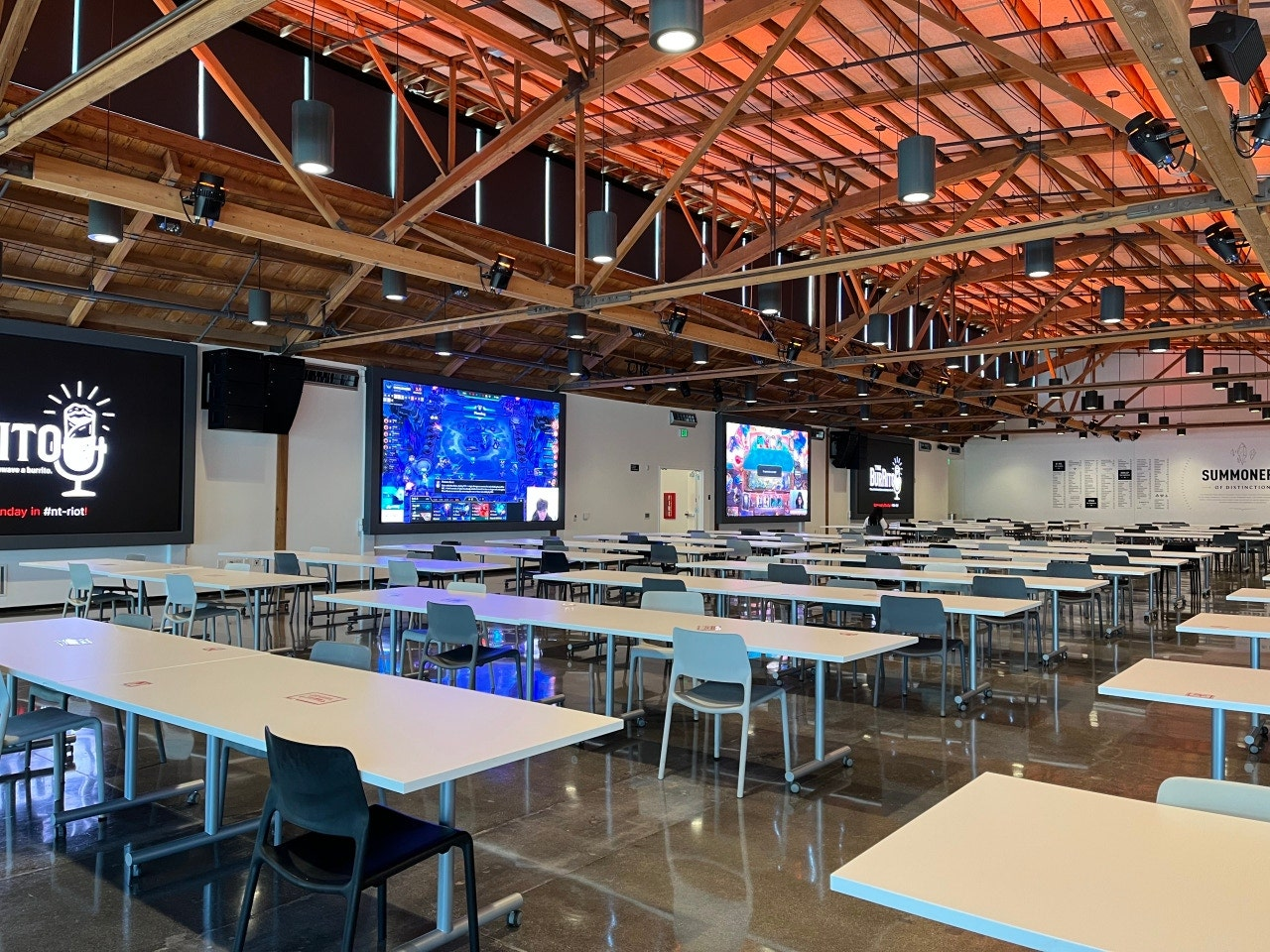 실내에선 라이엇 게임들의 실시간 스트리밍 방송들이 생중계 되고 있었습니다