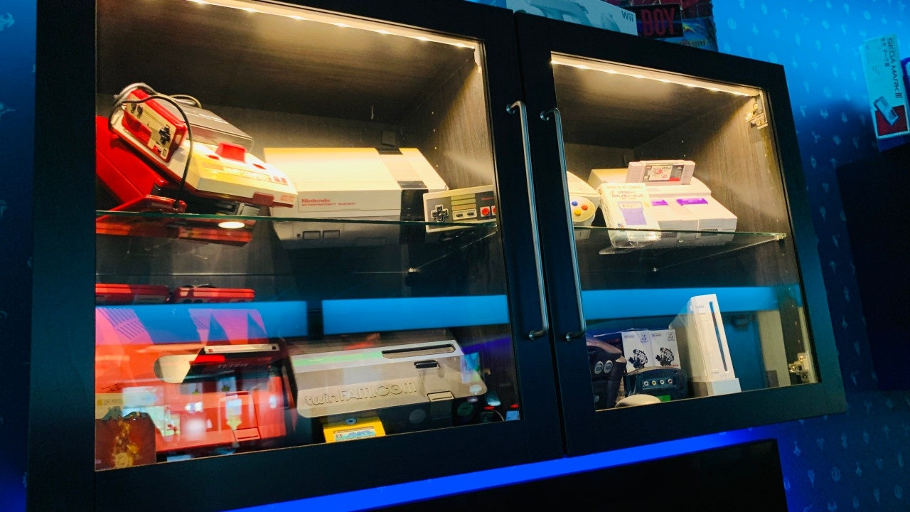 PS5와 같은 최신 기종을 포함 슈퍼패미컴 등 고전 게임기도 전시되어 있고