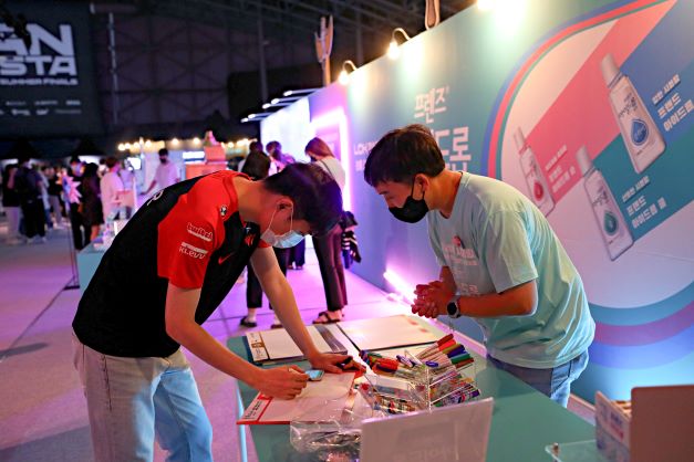 정순영 매니저 : 팬페스타 일주일 전에 결승 진출 팀이 결정이 났어요. 파이널 진출 두 팀을 응원하러 오는 팬들이 대부분일 테니 그 짧은 시간 안에 관련된 콘텐츠들로 내용을 채워야 했습니다. 그래서 세팅 첫날부터 마지막 날까지도 변경되는 내용들이 있었어요. 대응하고 준비하는 것이 쉽지 않았었습니다.