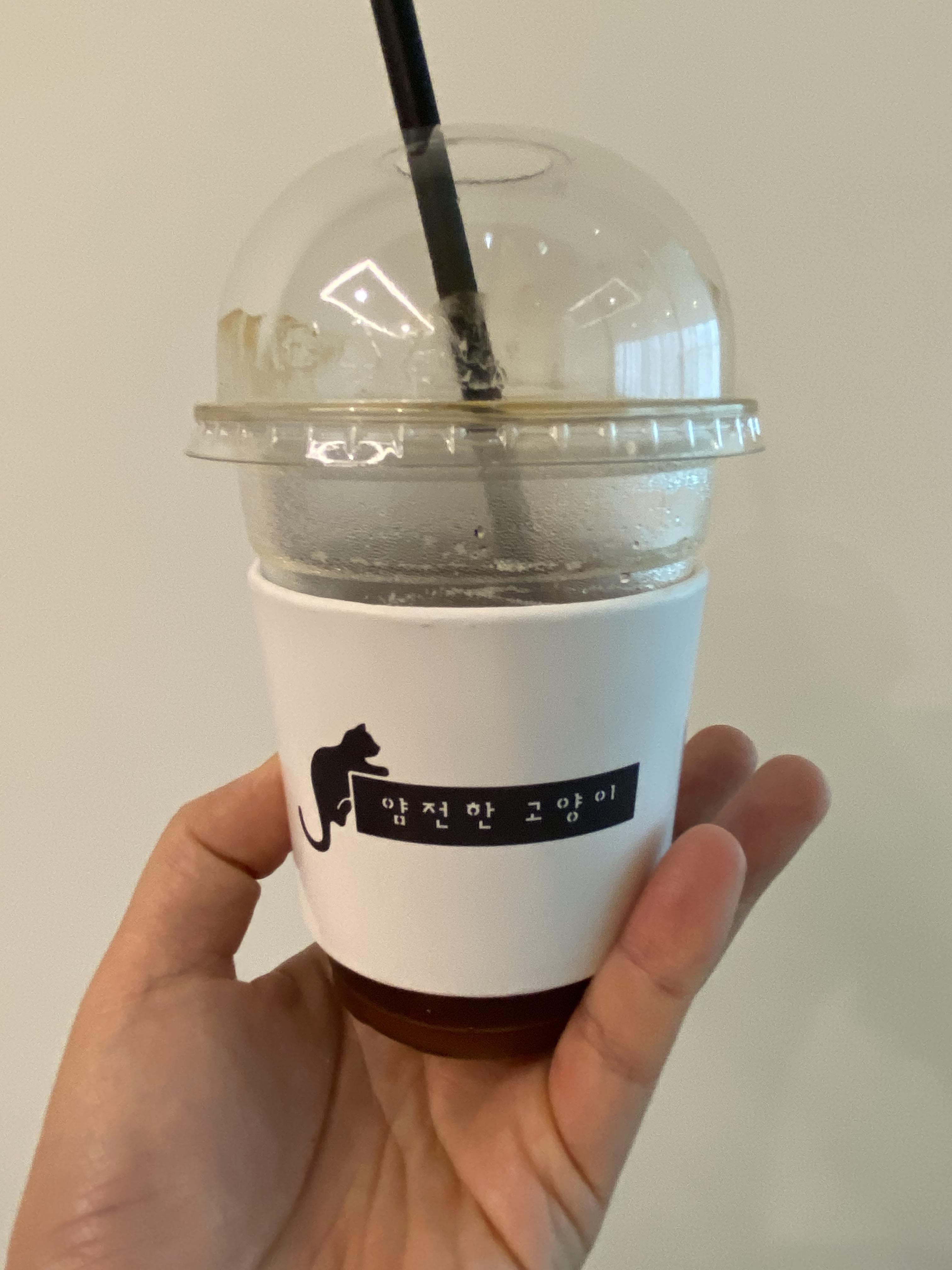 위에 '얌전한 고양이'라는 컵홀더 보이시죠