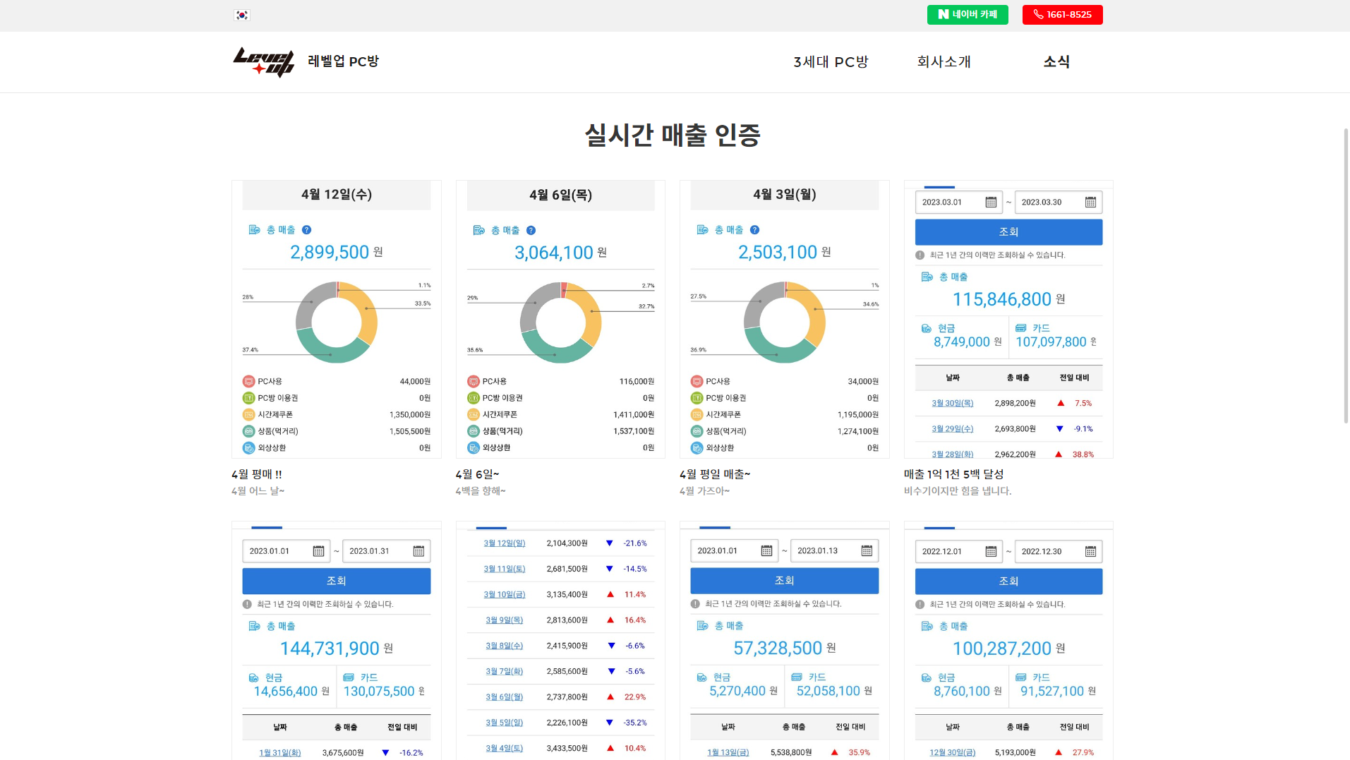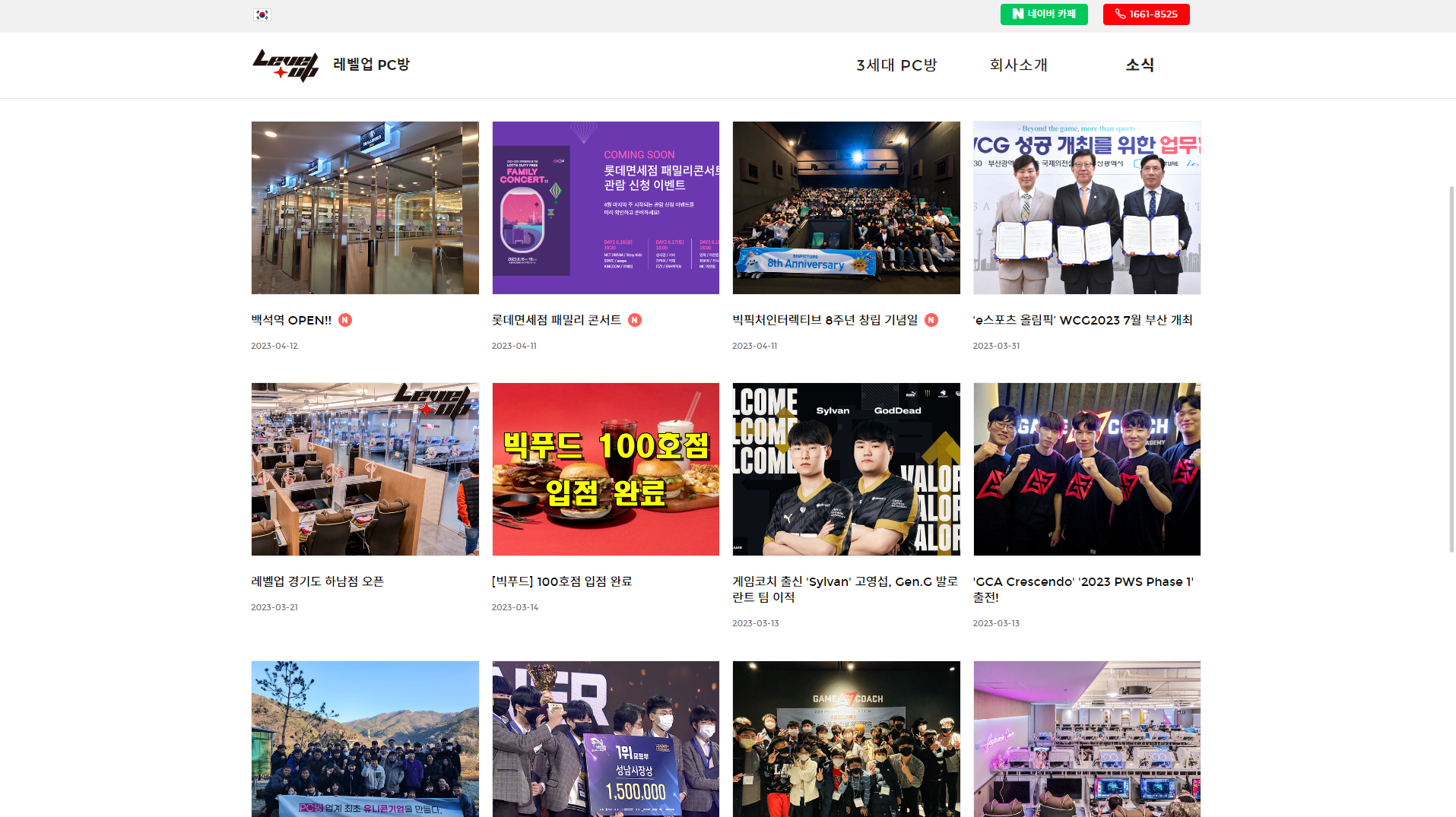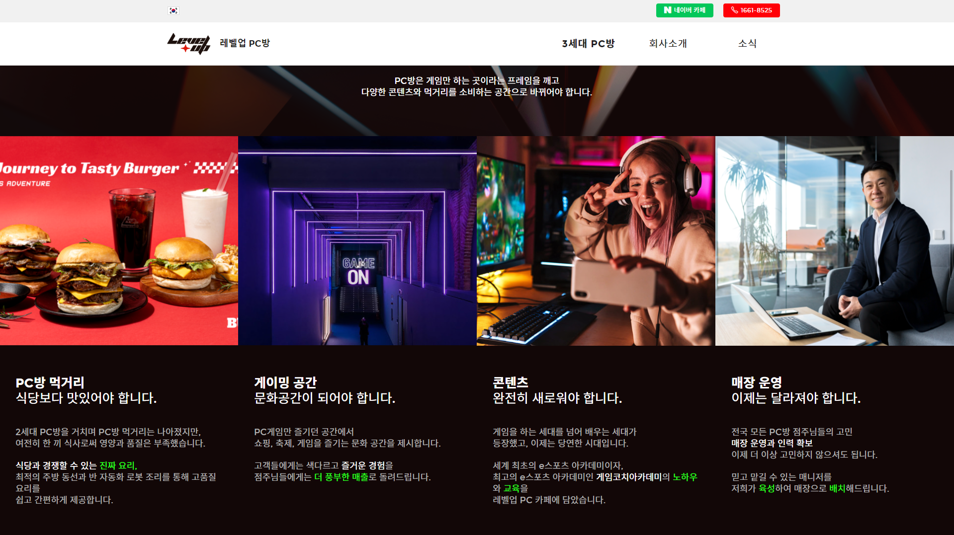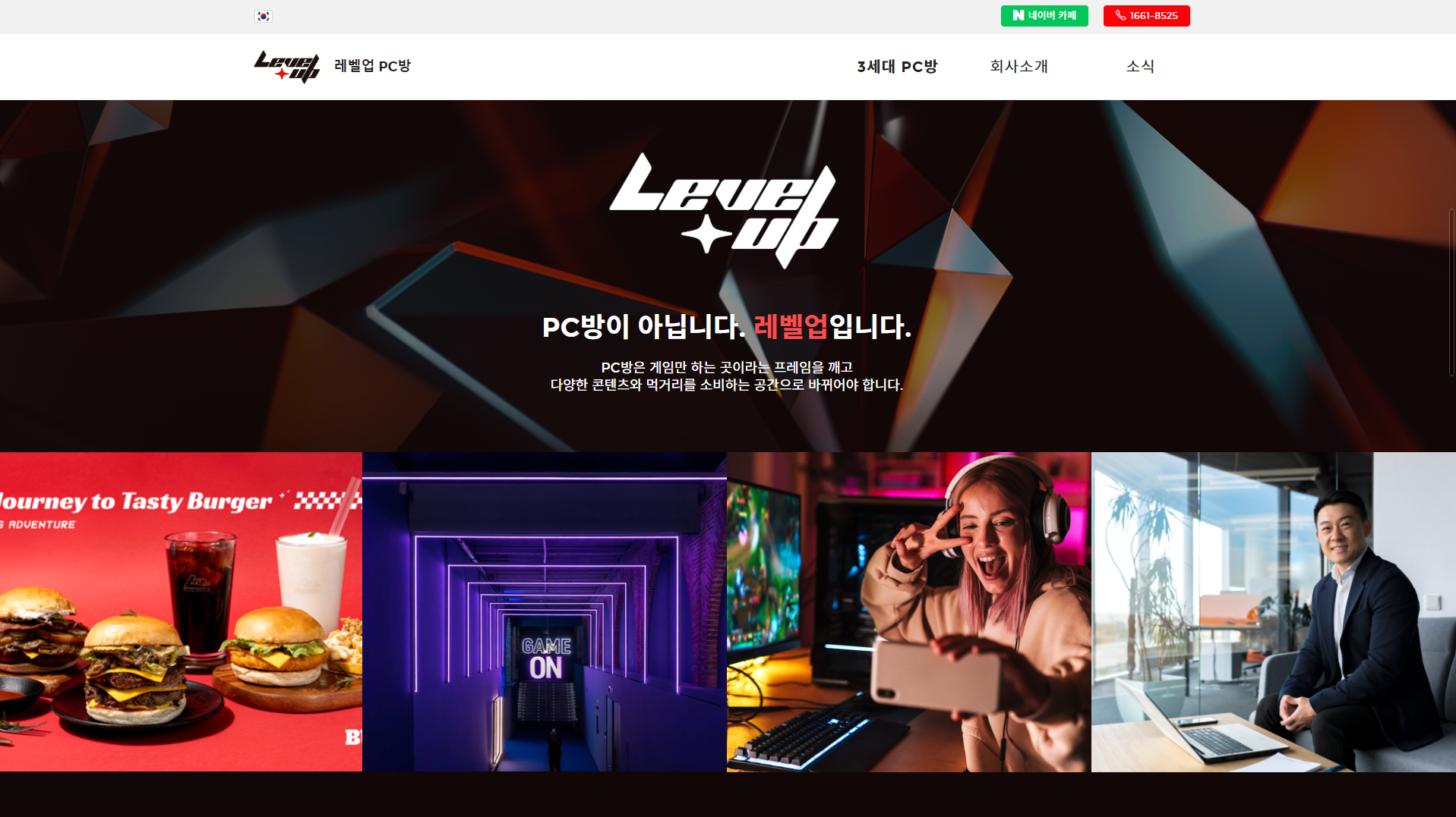 이제 레벨업PC방 홈페이지를 살펴볼게요