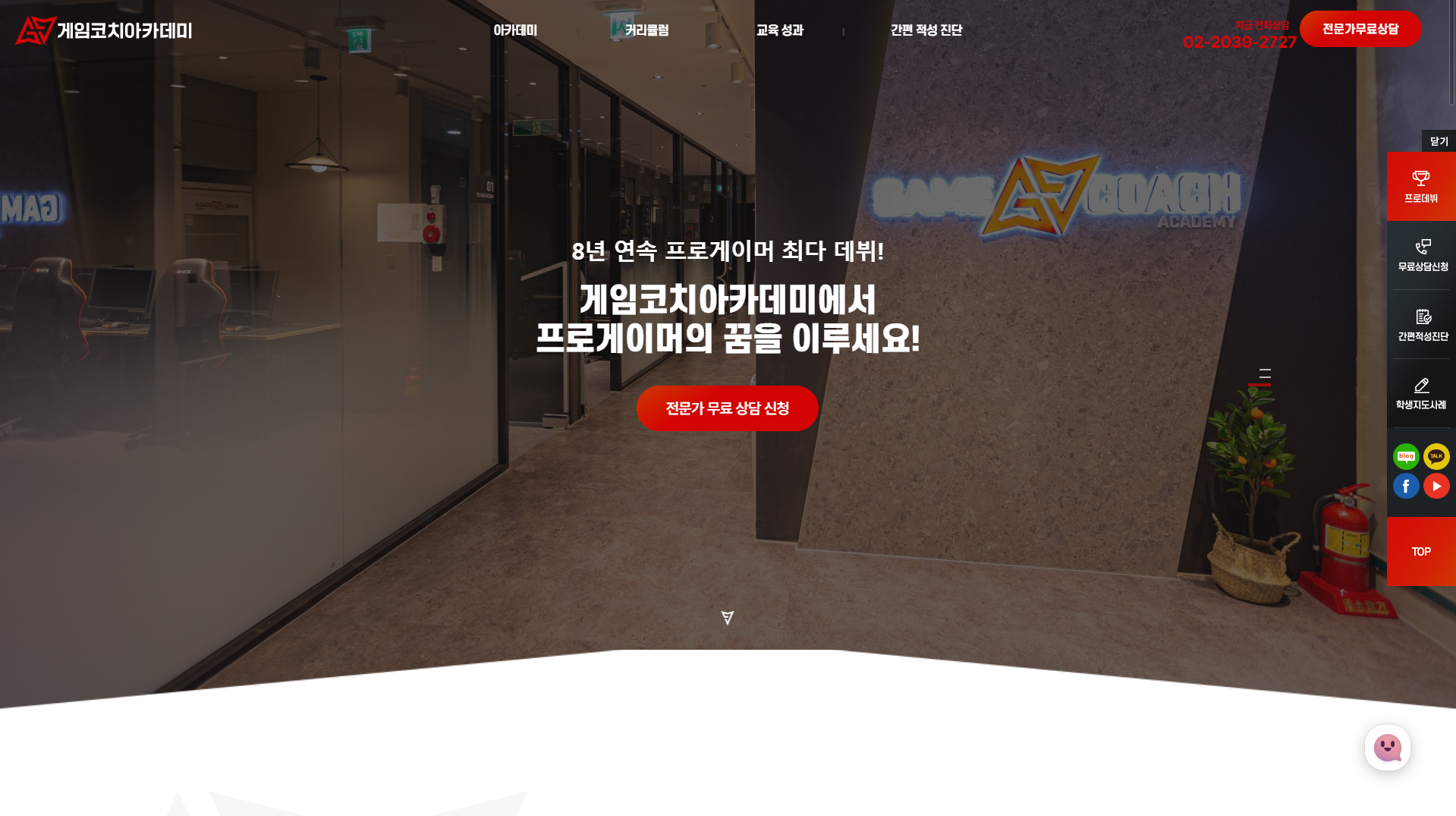게임코치아카데미의 새로운 홈페이지 비주얼~