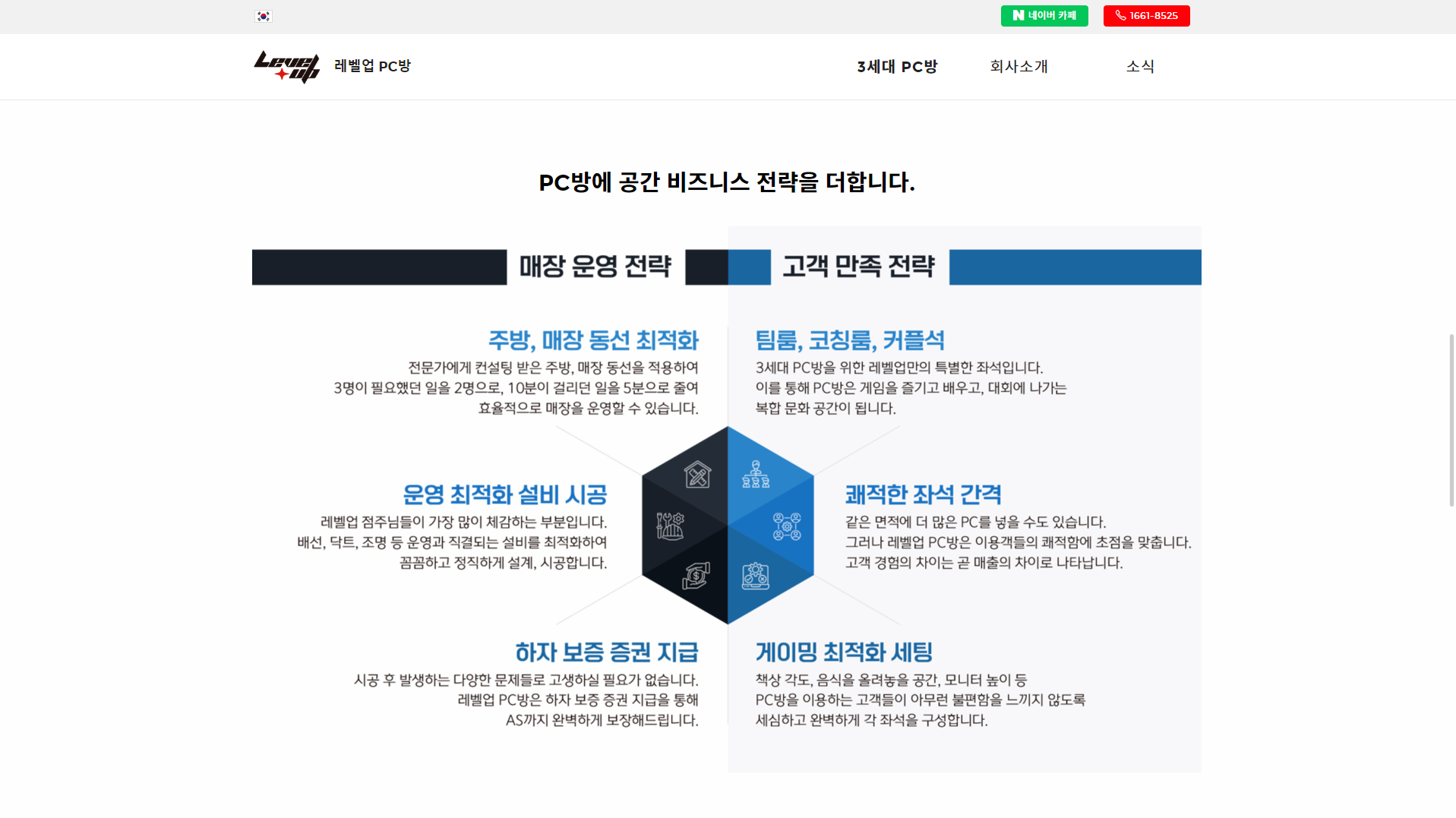 이제 레벨업PC방 홈페이지를 살펴볼게요
