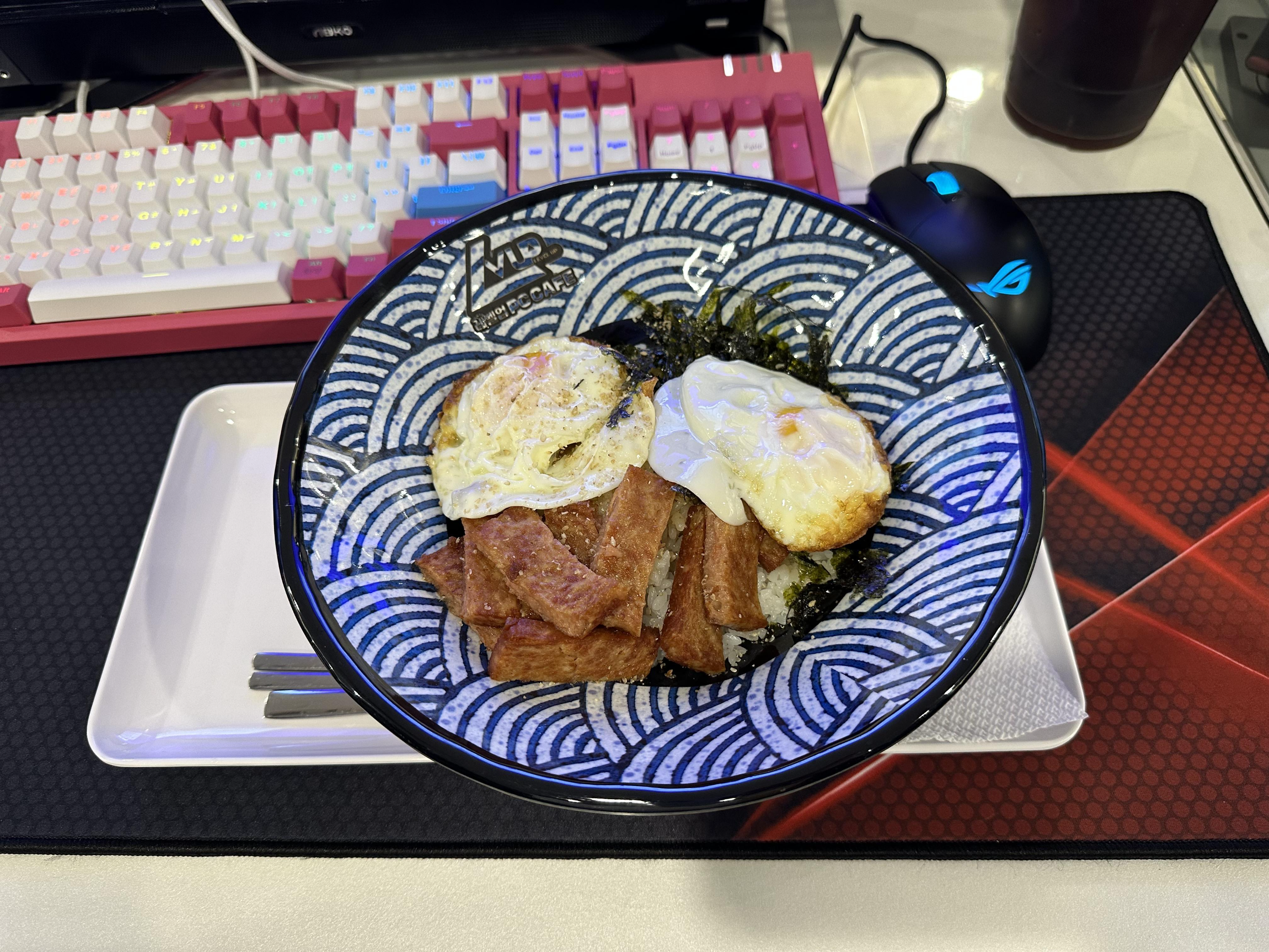 메뉴는 계란을 추가한 스팸 덮밥이었습니다