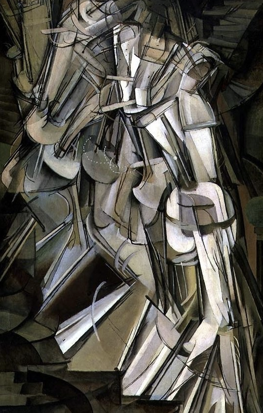 뒤샹의 '계단을 내려오는 누드'가 더 대단한 점은 '움직임'을 추상화 함으로써 정적인 캔버스에 '시간'을 담아 냈다는 점이다. 뒤샹은 시간을 쪼개고 계단을 내려오는 사람의 형상을 여러 정지된 화면으로 늘어 놓았다. 이 작품에 역동성을 불어 놓는 건, 바로 이 연속적인 장면을 바라보는 관찰자의 눈이다.