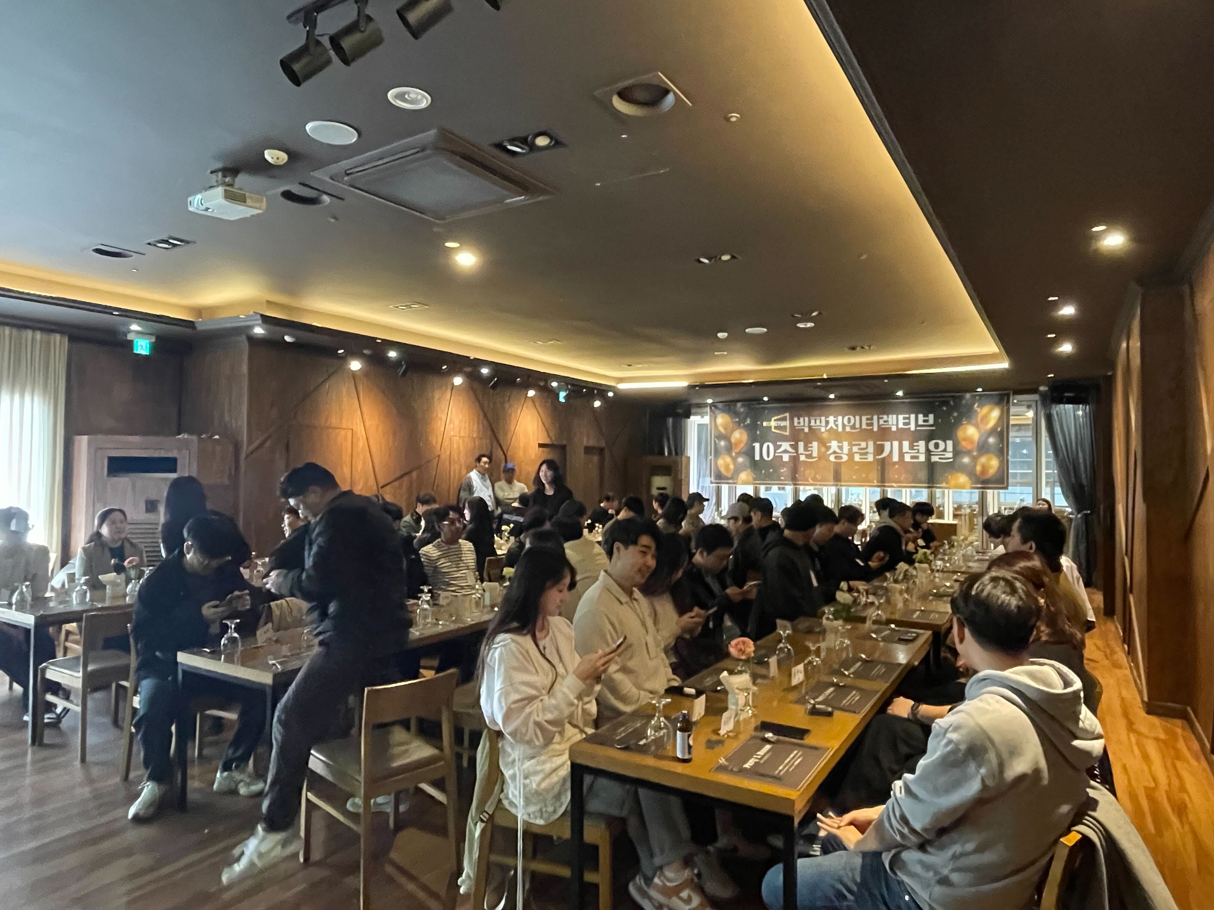대표님과의 10주년 케이크 커팅식은 가장 최근에 입사한 직원과 함께 하게 되었는데요,
