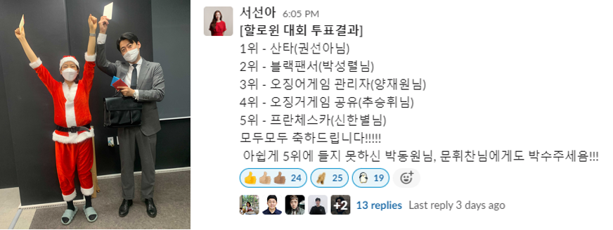 대망의 1위는 산타 복장이군요