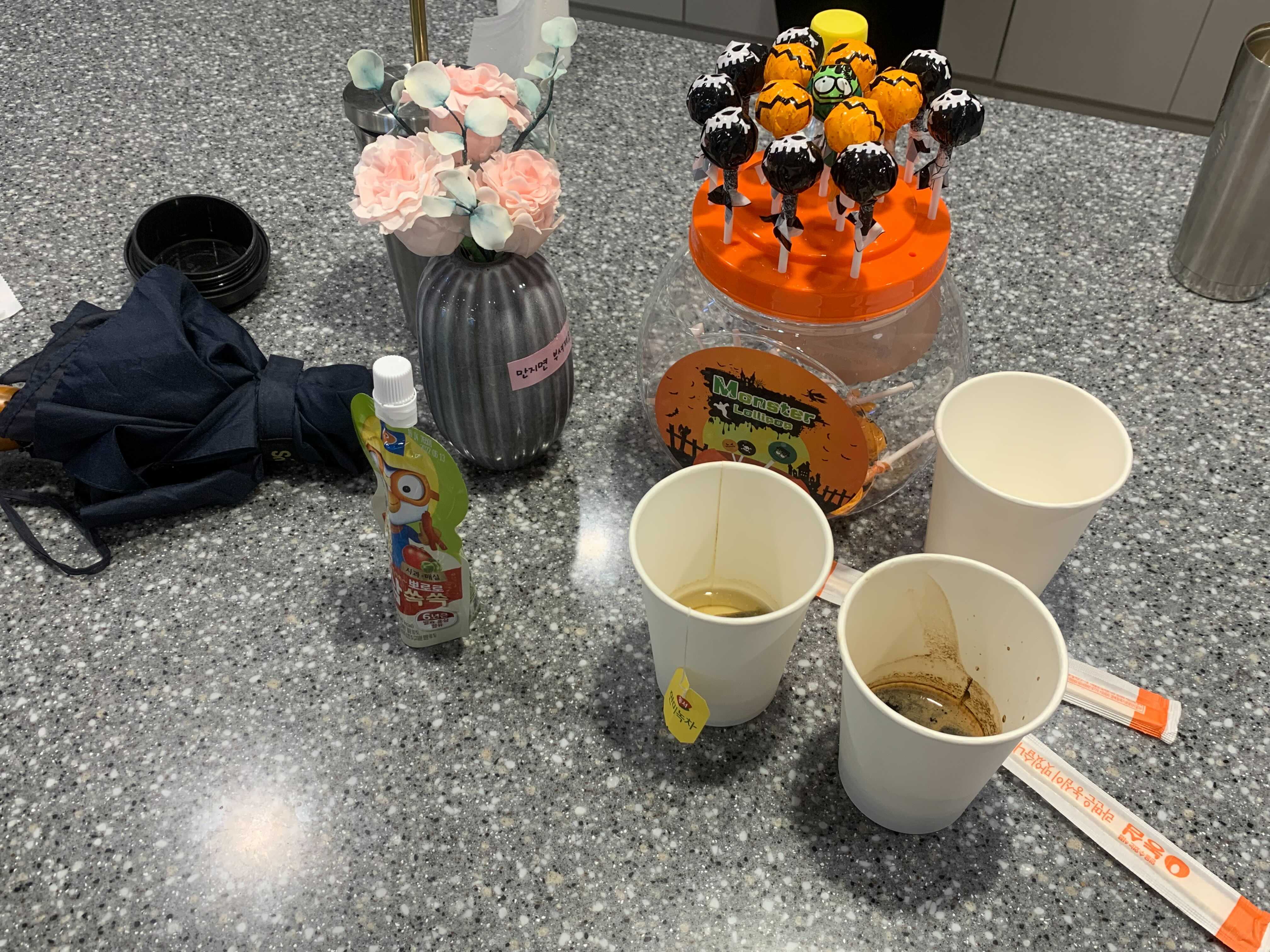 사진 속 컵은 사용하신 분들이 치워주시면 너무 좋을 거 같아요