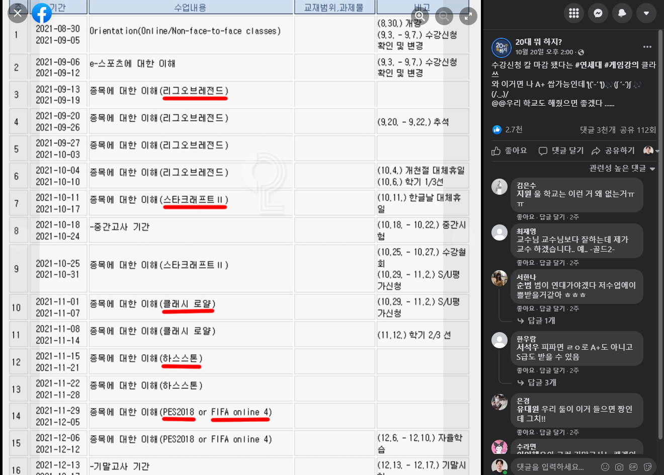 우리가 왜 이런 이야기를 하는가 하면 우리는 새로운 것에 대해서는 언제든 잘 모를 수 있습니다. 오히려 새로운 것인데 잘 알고 있다면 새로운 것이 아닐 가능성이 높지요. 저는 연세대학교에서 이스포츠를 (비록 교양이지만) 대하는 데 있어서 과연 얼마나 이 새로운 것에 대한 학습이 선행되어서 이루어졌을까를 한번 생각해봅니다. 물론 실제로 이 수업을 들어 본다면 납득할만한 포인트가 있을 수도 있습니다. 그러나 커리큘럼의 구성 자체를 보고 판단을 해보면 아무리 긍정적으로 해석을 하려고 해도 그 그림이 명확하게 그려지지 않는 것은 사실입니다. '우리가 하는 일에 대해서 과연 어떤 일이라고 생각을 하고 이런 구성을 하셨을까?'라는 생각을 하면 씁쓸한 면이 전혀 없다고 말하기는 어렵겠지요.